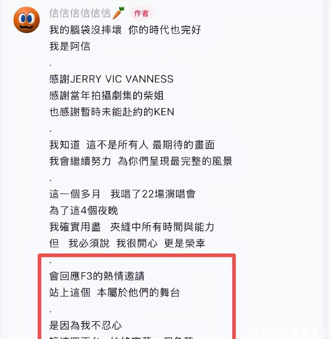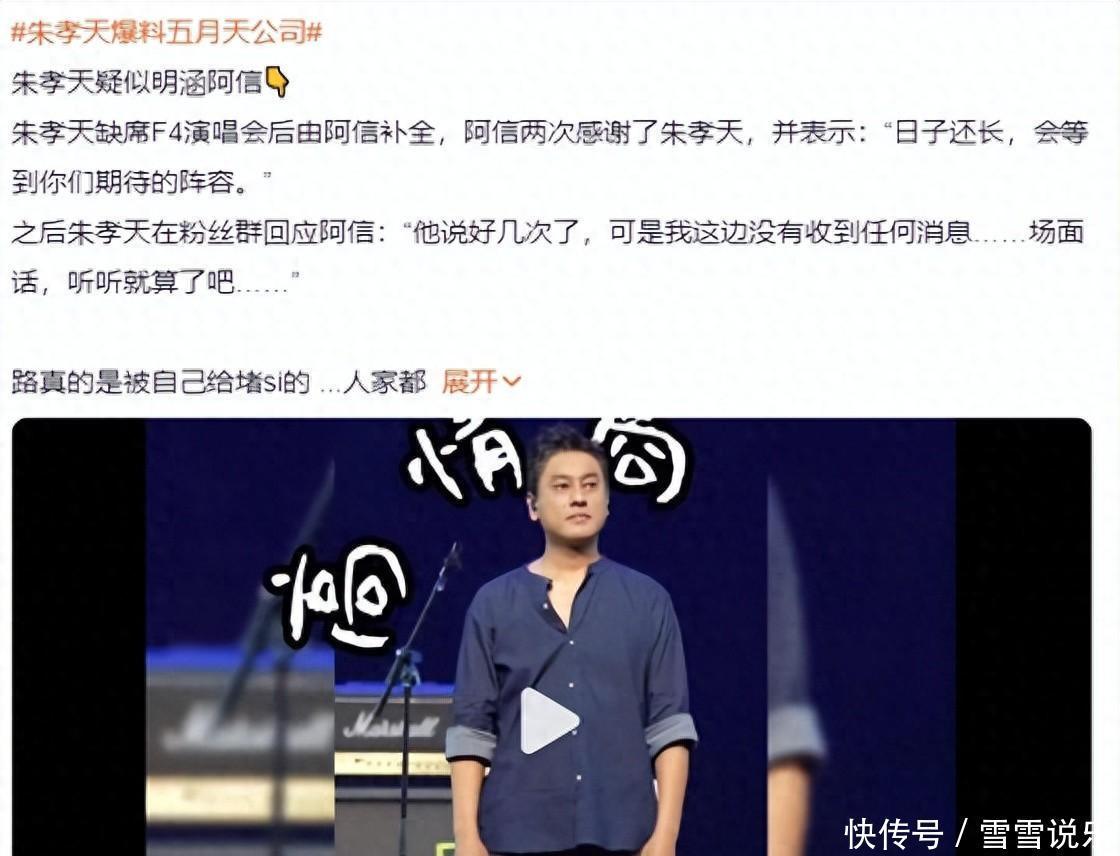 哎哟喂,这瓜真是又大又烫手!一早刷手机,热搜直接炸了——朱孝天连珠炮开火,矛头直指“相信音乐”:炒票、逃税、跨境洗钱,连假唱都敢安排?听着像电视剧桥段,可人是真敢说。 更微妙的是,阿信临时顶上F4空位那场上海站,台上台下两次致谢“暂时缺席的Ken”,结果人家本人一句“压根没收到邀请”,直接把温情剧本撕了个稀巴烂。这哪是补位?简直是补刀现场啊。